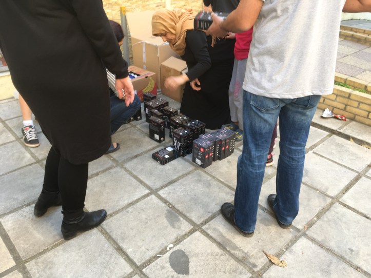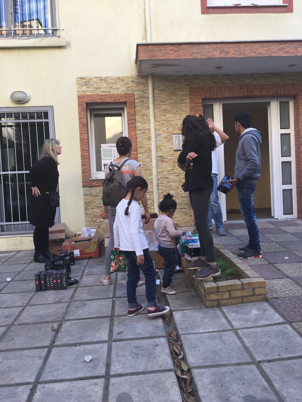 Draußen wurde dann kurz gesichtet und umsortiert und schon ging es los mit Unterwäsche, Milch, Süßigkeiten und Windeln zu einem Mehrfamilienhaus, welches Unterkunft für 11 Familien bietet und vom UNHCR finanziert wird.