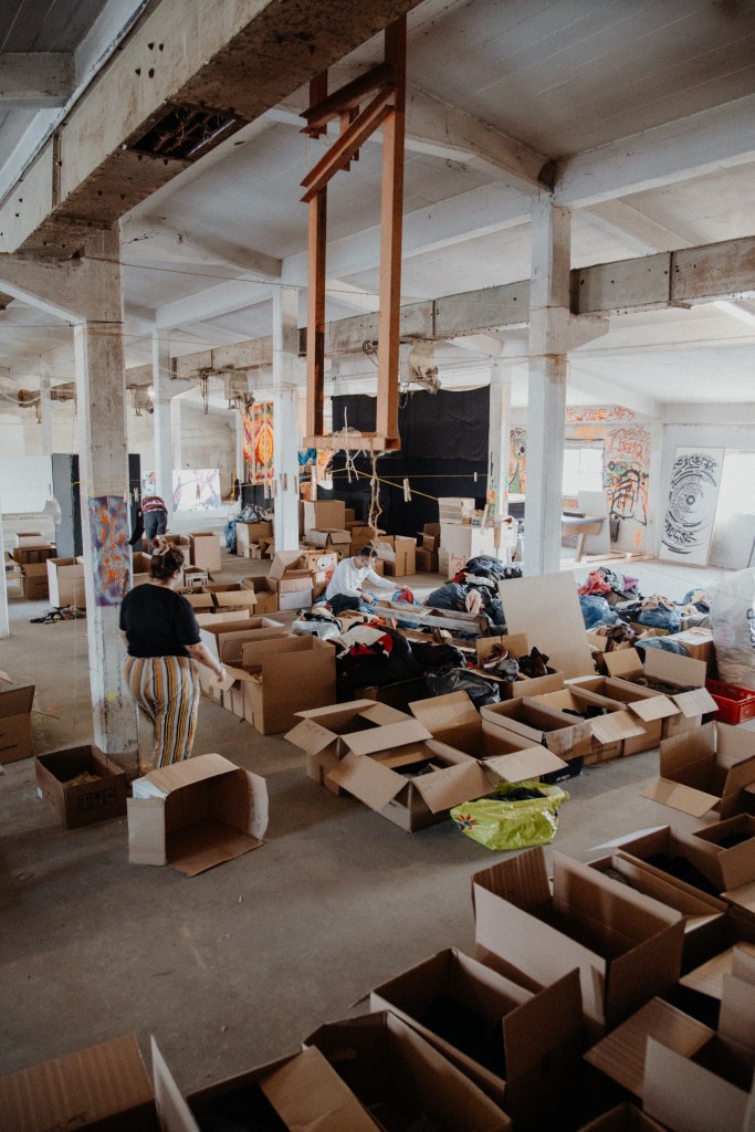 Parallel dazu lief in Dortmund eine Sammelaktion für Sachspenden, die einen weitaus größeres Ausmaß annahm als gedacht. Auch aus anderen Teilen des Ruhrgebietes erreichten uns Unterstützungsangebote. So wurden Sachspenden nicht nur im Offenen Zentrum Dortmund abgeliefert und angenommen, sondern auch in Hagen, Herten und Oelde. An dieser Stelle vielen lieben Dank an das Offene Zentrum Dortmund und Mona, den Umsonstladen Hagen, die Urban Guerilla Youth, die Seebrücke Hagen und Oelde und nicht zu vergessen die Kirchengemeinde St. Antonius Herten sowie auch all die Helfenden an den Sortiertagen.